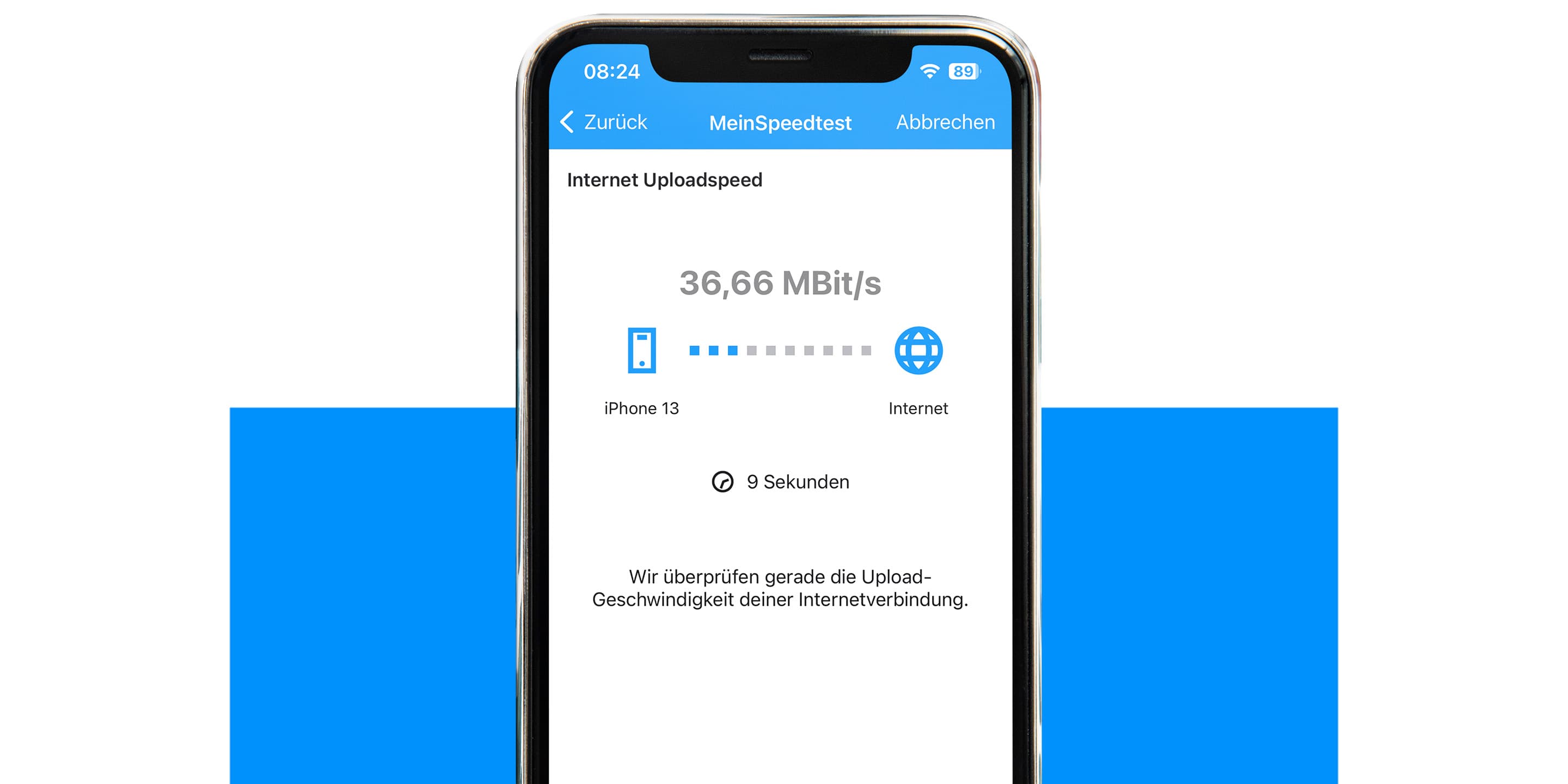 Mit der Funktion "MeinSpeedtest" misst du die Internet-Geschwindigkeit bei dir zu Hause. Die Messung erfolgt zwischen deinem Smartphone, deinem WLAN-Router und deiner Internetleitung. Dabei ist es egal, ob du unseren Internet- oder Glasfaser-Tarif nutzt. Anschließend zeigt dir die App genau auf, wo es eine eventuelle Beeinträchtigung deiner Verbindung gibt und wie du diese beheben kannst.